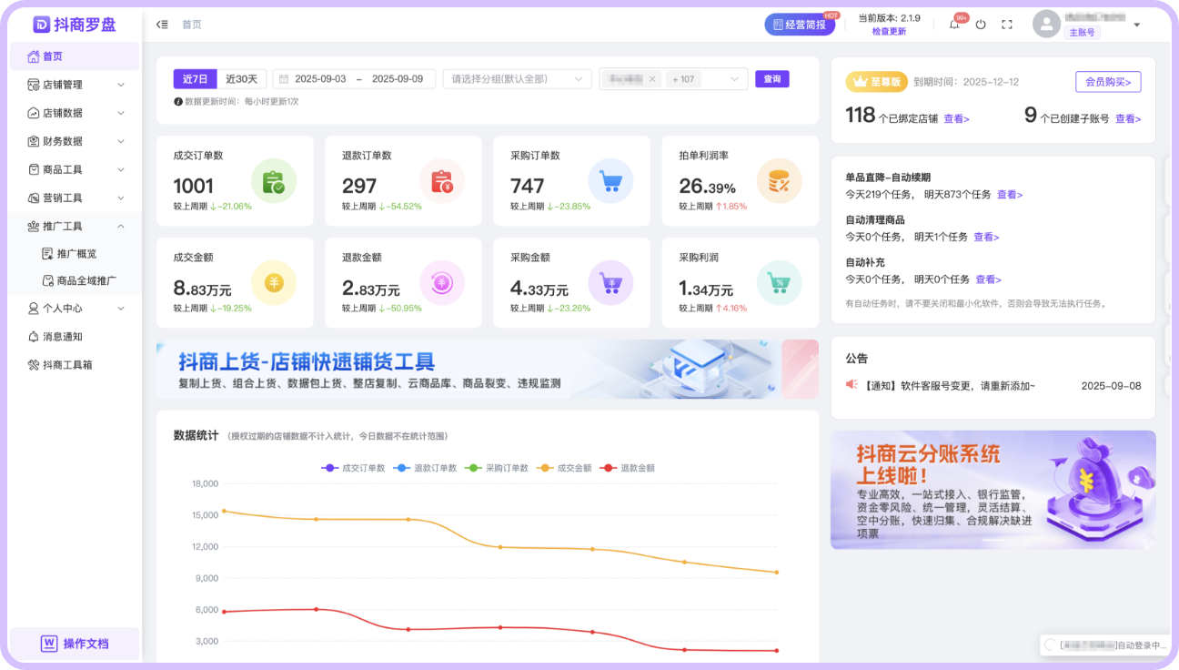 全方位数据分析,实时监控店铺表现,提供精准运营决策支持。