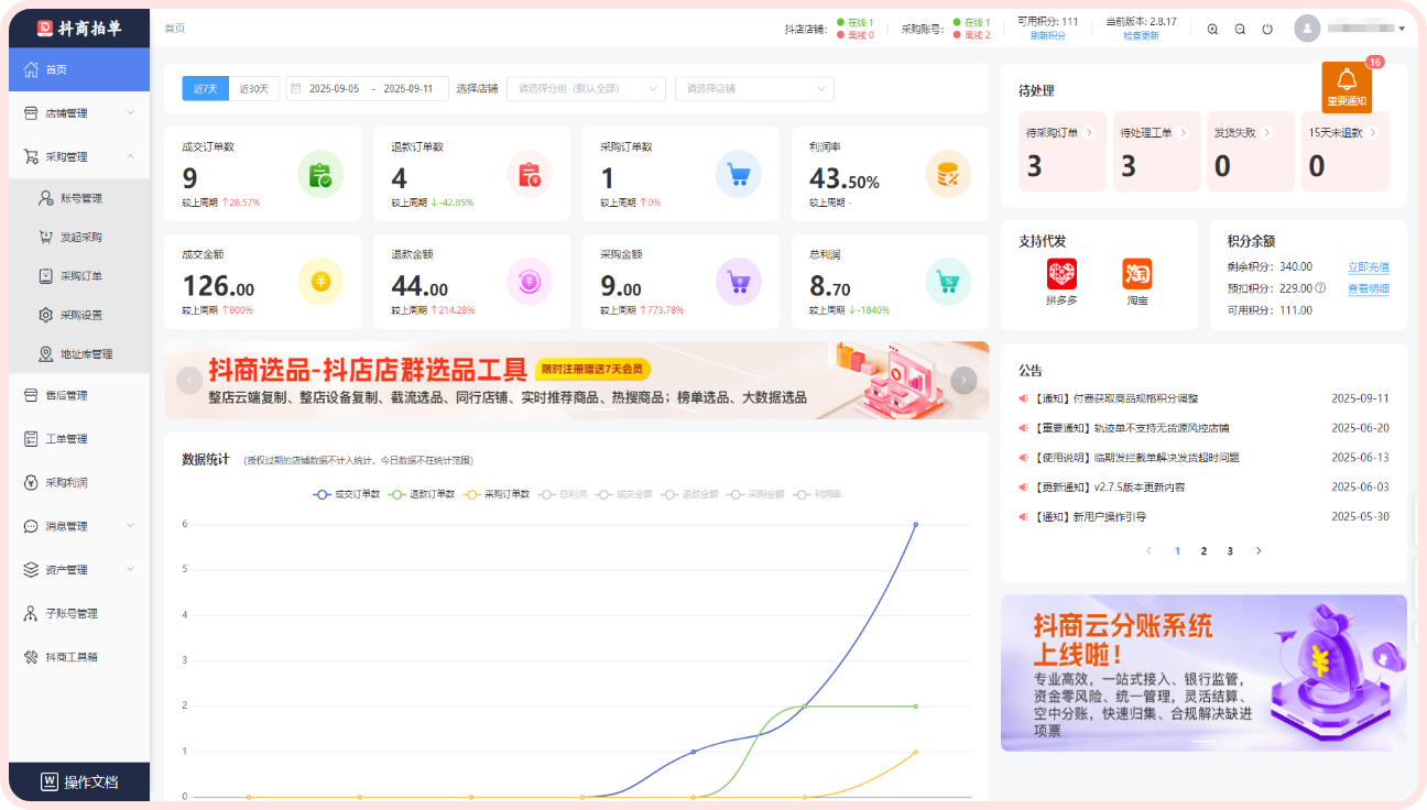 抖店订单,关联采购账号,智能发起采购流程,无需人工介入