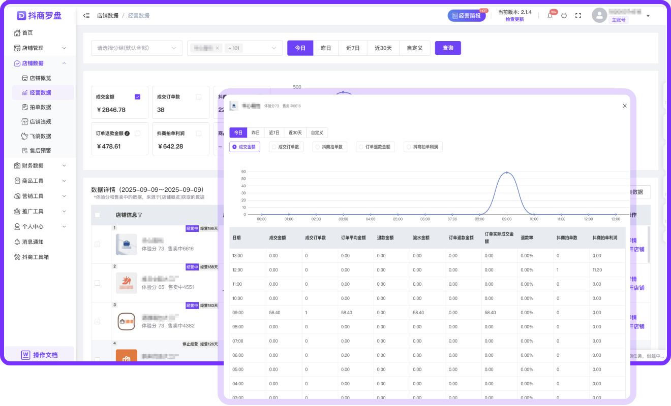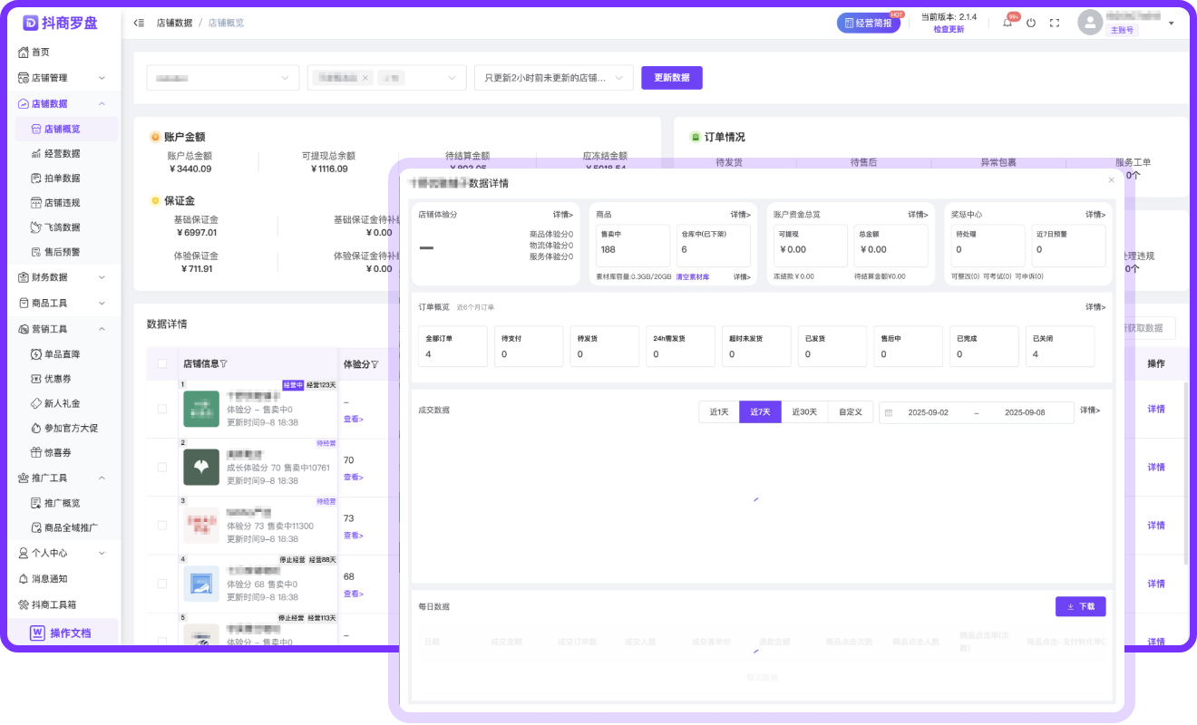 全方位抖音电商数据分析平台,深度解析店铺运营数据,提供数据驱动的决策支持与丰富运营工具,提升运营效率